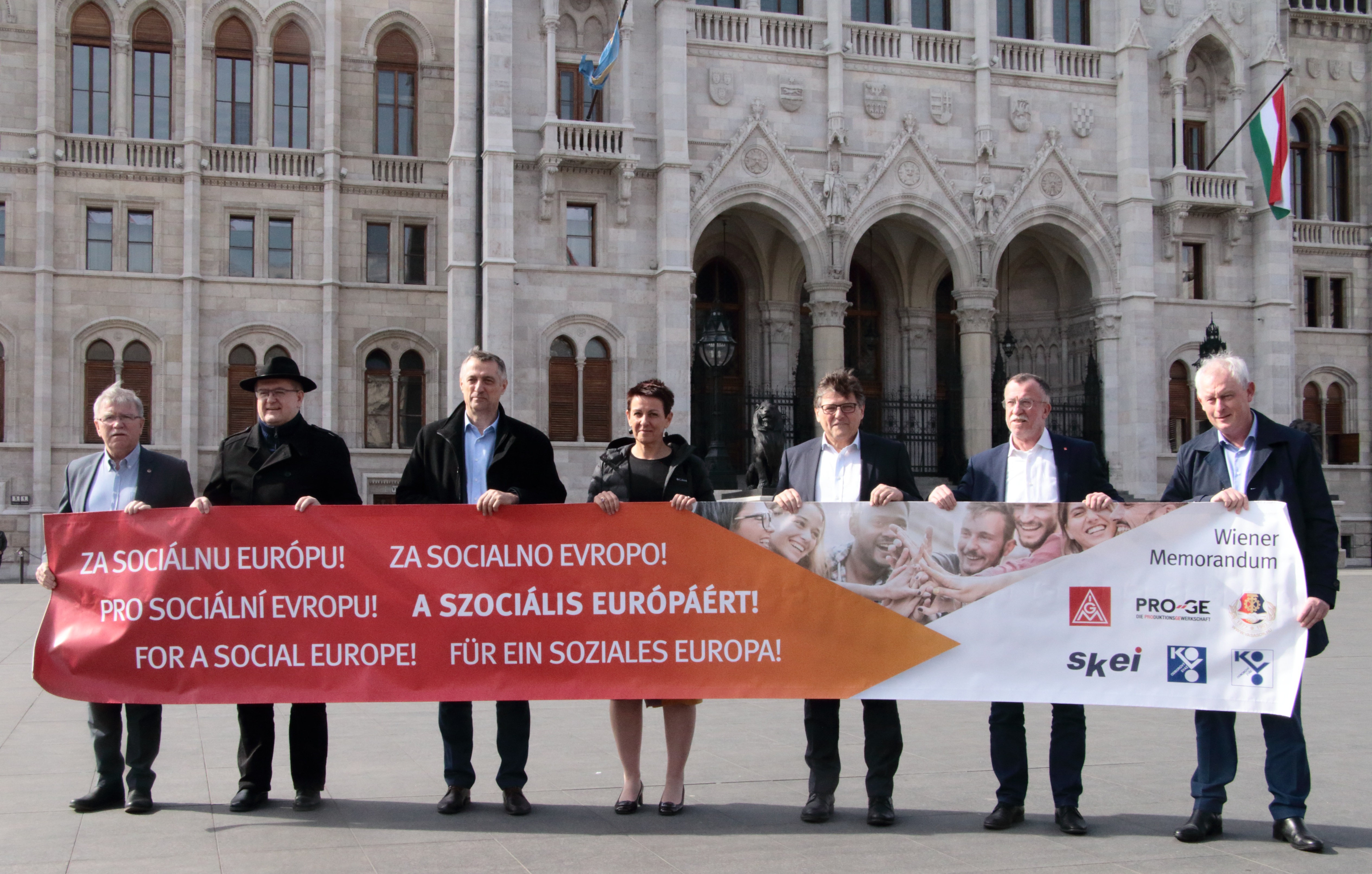 Megkezdte munkáját a bécsi Memorandum Csoport elnöki találkozója Budapesten. A Vasas szervezésében olyan témákat tárgyaltak meg a résztvevők, mint az egyes országok gazdasági, politikai, társadalmi helyzete, a nyugdíjrendszerek, a közelgő európai parlamenti választások, az autóipar kilátásai. Az elnökök kora délután a parlament előtt tartottak flashmobot a "Szociális Európáért!".