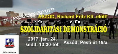 Ismét egy szükségtelen és brutális támadás érte közös jogainkat. A VDSZ szakszervezet működési területéhez tartozó aszódi tagszervezetnél elbocsátották a szakszervezeti titkárt (aki egyben ÜT elnök és munkavédelmi képviselő is). 2017. január 13-án, az ügyének rendezésére tett szakmai megbeszélések ellenére is, a Richard Fritz Kft-től elbocsátásra került, munkáltatói rendes felmondással. Ez ellen a lépés ellen a VDSZ határozottan tiltakozik, a történteket jogtalannak tartja! Szolidaritási demonstrációt szerveznek, együttműködve a közelmúltban szintén nagy botrányt kavart FKF-től kirúgott tisztségviselőkkel. Az aszódi székhelyű cég elé várnak mindenkit, akit felháborítanak ezek az esetek. Az AMASZ a VDSZ, és így a Magyar Szakszervezeti Szövetség tagszervezete.